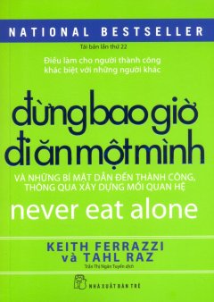 Bạn mong muốn đi tắt đón đầu? Bạn muốn vững bước đến thành công? Công thức để làm được điều này, theo lời bậc thầy về kết nối là Keith Ferrazzi, chính là phải biết làm quen với mọi người. Ferrazzi đã khám phá từ khi còn trẻ rằng điểm khác biệt của những người thành công rực rỡ chính là cách họ vận dụng quyền năng của những mối quan hệ - để mọi người cùng thắng. Trong quyển sách Đừng bao giờ đi ăn một mình, Ferrazzi chỉ ra từng bước cách thức – và lý do – mà chính ông đã áp dụng để kết nối với hàng ngàn người là đồng nghiệp, bạn bè có tên trong số danh bạ, những người ông đã giúp đỡ và ngược lại cũng sẵn sàng giúp đỡ ông. Ferrazzi sinh ra trong một gia đình có cha là công nhân nhà máy thép tỉnh lẻ và mẹ là lao công. Tuy vậy ông đã biết tận dụng khả năng kết nối xuất sắc của mình để dọn đường vào đến Yale, nhận bằng MBA tại Harvard, và giữ những chức vụ lãnh đạo quan trọng. Mặc dù chưa quá 40, Ferrazzi đã tạo được một mạng lưới trải dài từ hành lang ở Washington đến các tên tuổi lớn tại Hollywood. Ông đã được tạp chí Crain bình chọn là một trong số 40 người lãnh đạo kinh doanh dưới 40 tuổi đồng thời là Nhà lãnh đạo tương lai của thế giới tại Diễn đàn Kinh tế Thế giới ở Davos. Phương pháp kết nối của Ferrazzi dựa trên nền tảng là sự rộng lượng, giúp đỡ bạn mình kết nối với những người bạn khác. Ferrazzi phân biệt rõ ràng giữa xây dựng mối quan hệ nghiêm túc với cách “tạo mạng lưới” vô tội vạ. Ông hệ thống hoá phương pháp của mình thành những nguyên tắc thực tiễn và đã được kiểm chứng như: Đừng ghi sổ: Kết nối không phải là cố gắng đạt được những gì mình muốn. Bạn phải đảm bảo những người quan trọng đối với bạn cũng đạt được điều họ muốn. Liên tục “pinging”: Nên nhớ phải liên tục liên hệ với những nối kết trong mạng lưới của bạn, không chỉ đợi đến khi bạn cần họ.